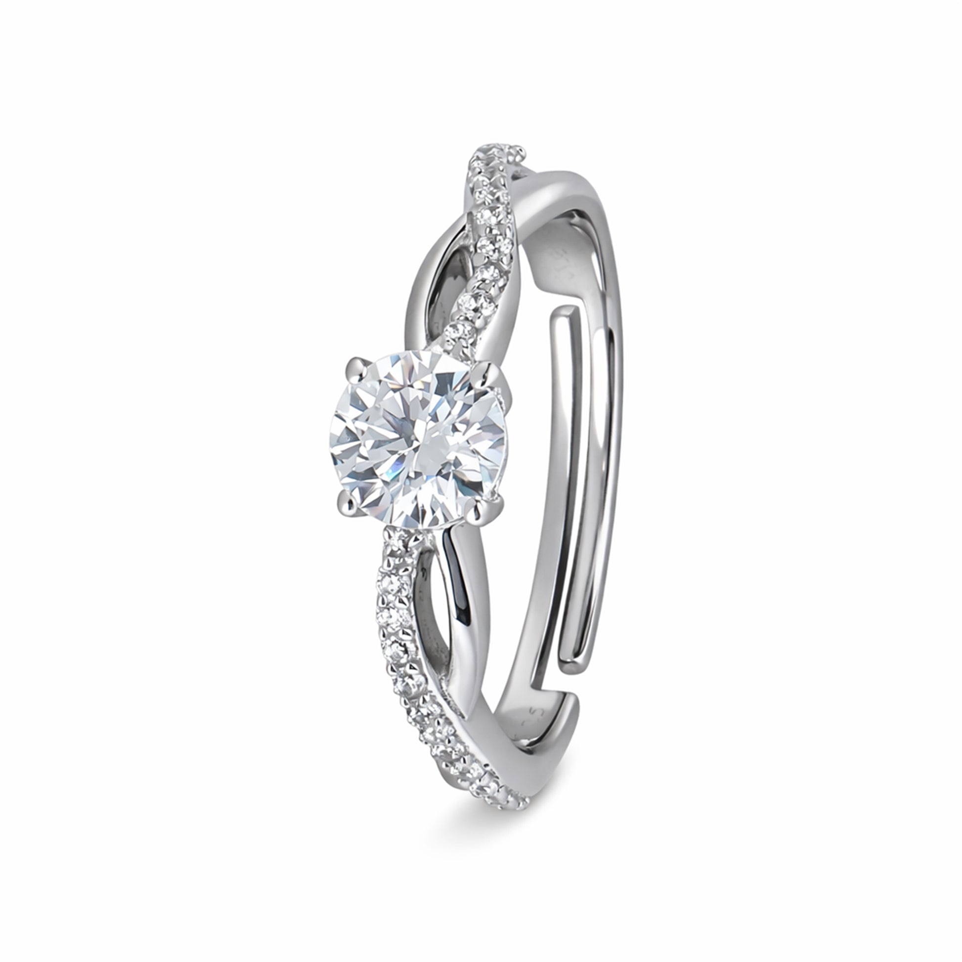 Crafted in pure 925 sterling silver with rhodium plating, this Aura style solitaire ring is designed with a soft, refined aesthetic that feels elegant and balanced. The subtle silhouette creates a calm, luminous look that is understated yet sophisticated, making it ideal for modern fine jewellery styling.