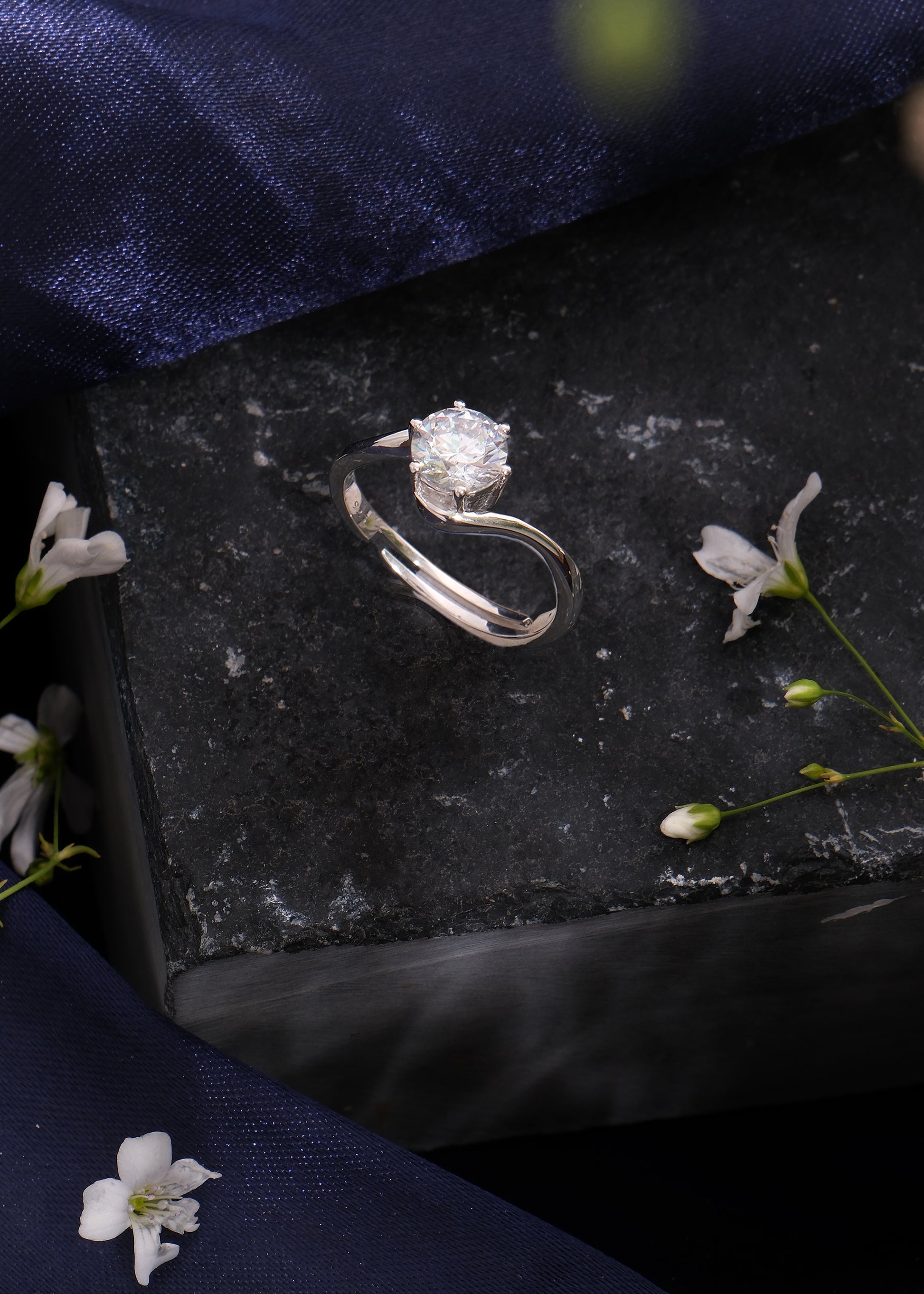 Crafted in pure 925 sterling silver with rhodium plating, this Ariel style solitaire ring is designed with a light, graceful aesthetic that feels delicate yet refined. The airy silhouette allows the center stone to stand out effortlessly, creating a look that is elegant, feminine, and modern in its simplicity.