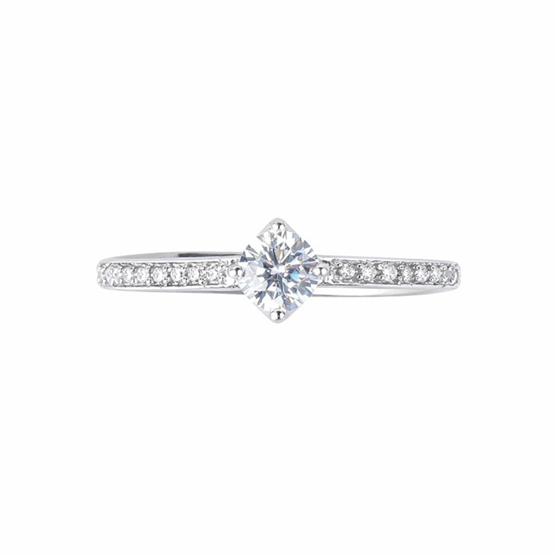 Crafted in pure 925 sterling silver with rhodium plating, this Sparkle style solitaire ring is designed to highlight brilliance through a lively yet refined aesthetic. The clean silhouette enhances the radiance of the centre stone, creating a look that feels elegant, feminine, and modern in its simplicity.