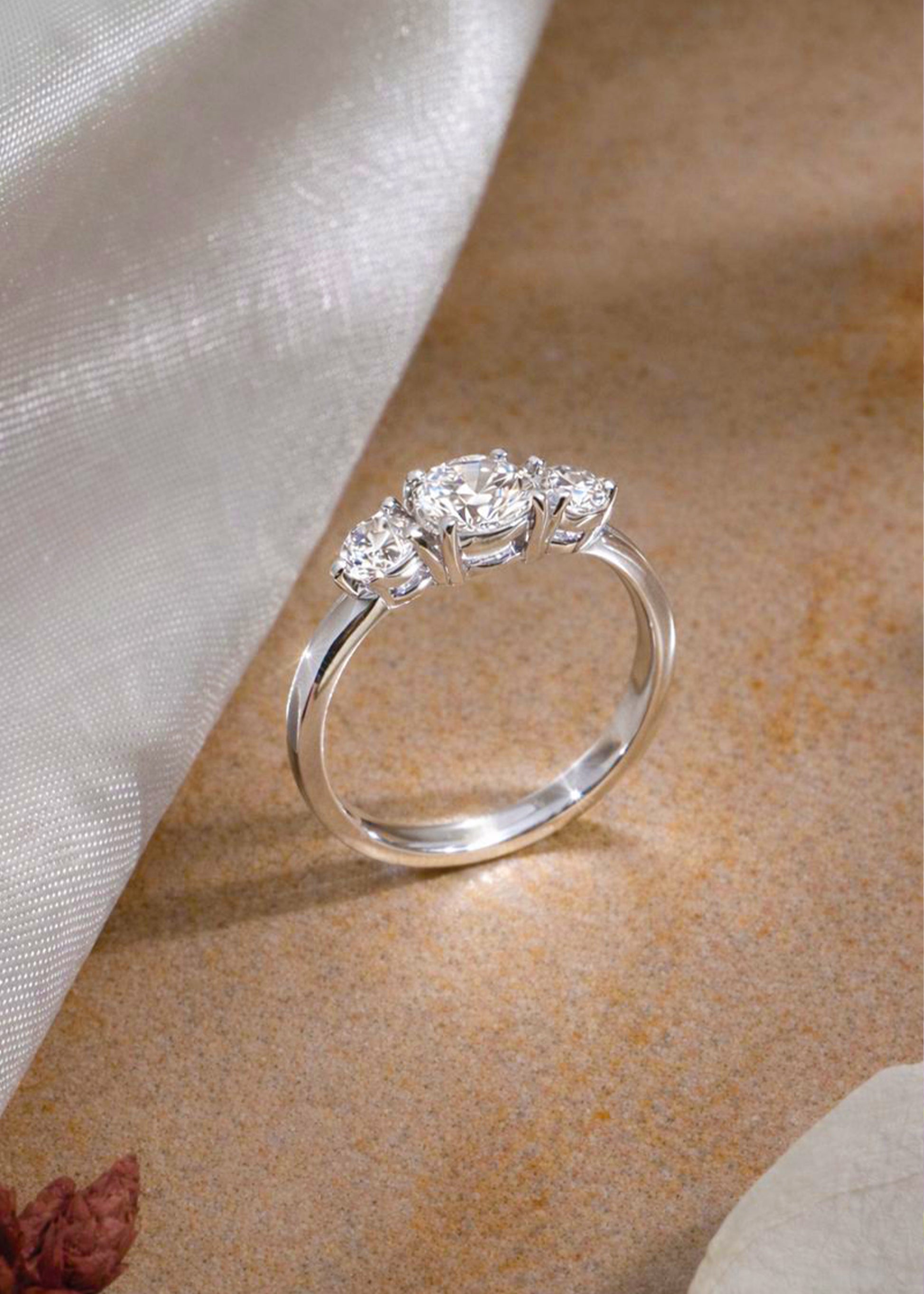 - Design Style: Three Gems–inspired solitaire with a modern, balanced silhouette
